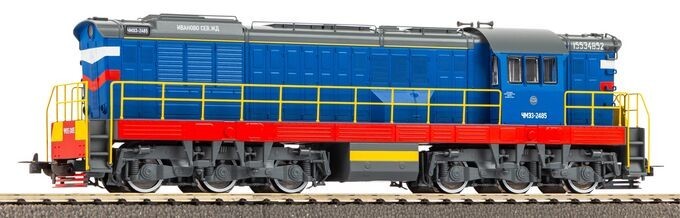 Модель легендарного маневрового тепловоза ЧМЭ3 с номером 2485 Северной железной дороги, приписки депо Иваново. Выполнена в уникальном синем цвете кузова.