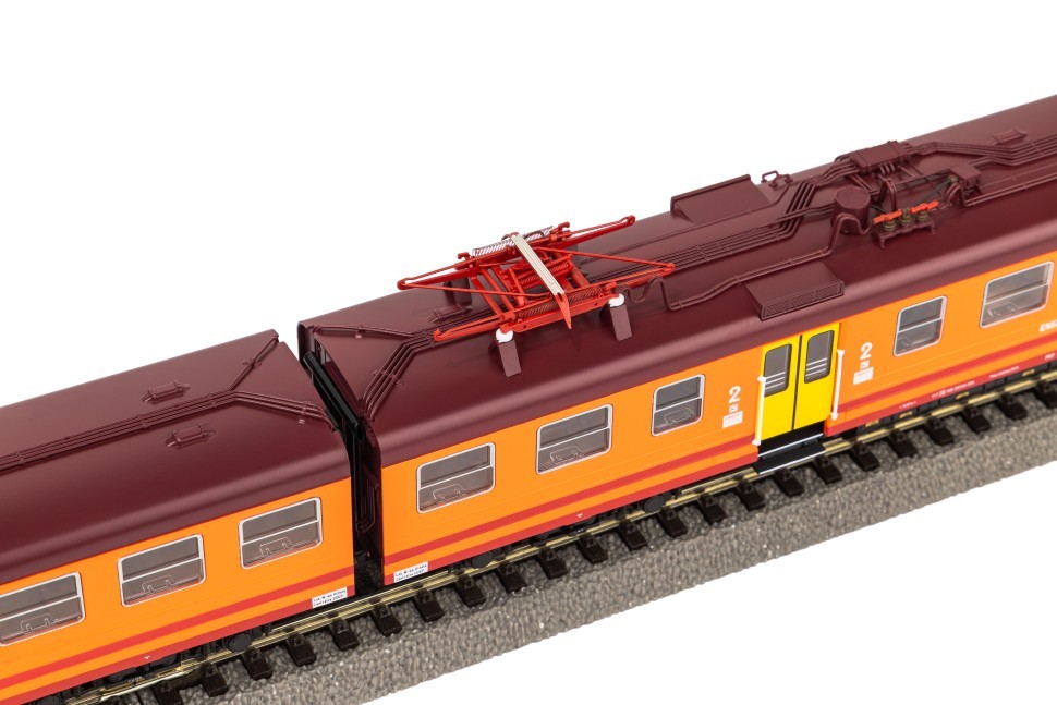 Электропоезд EN57 железных дорог Польши эпохи V. В модели в точности воспроизведены характерные черты оригинала, такие как оборудование крыши, изящные пантографы, реалистично воспроизведенные фонари и внутренняя отделка. Сцепные устройства позволяют локомотиву работать в режиме двойной тяги, что предоставляет возможность формировать полноценные составы поездов в соответствии с прототипом. Мощный двигатель с маховиком обеспечивает модели отличные ходовые характеристики.