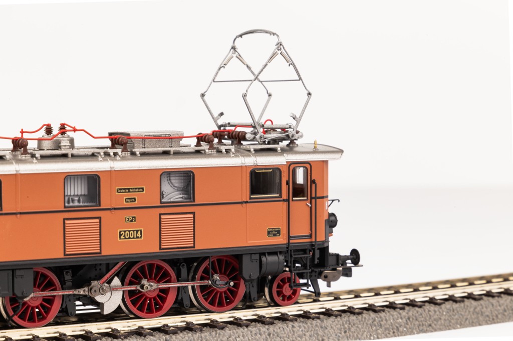 Штоковая передача BR E 32 со спицевыми колесами короткой конструкции позволяет продемонстрировать родство электровозов старого образца с паровозами, с расположением осей 1 "C1", как и у оригинала. Особенностями являются хорошо узнаваемые детали: клепки на крыше, навесные детали, такие как песочницы, колокол, тормозные шланги и ручные тяги. Современные светильники, а также филигранные ножничные пантографы типа SBS 10 визуально дополняют модель. Современные светильники, а также филигранные ножничные пантографы типа SBS 10 визуально дополняют модель. Модель впечатлет стандартным встроенным светом по светодиодной технологии с красными задними фонарями. Для несложного дооснащения декодера на плате приборной панели имеется интерфейс PluX22. Звуковая версия имеет соответствующий звуковой декодер PIKO, вкл. динамик с завода.