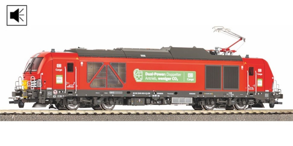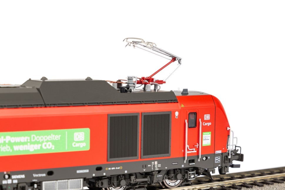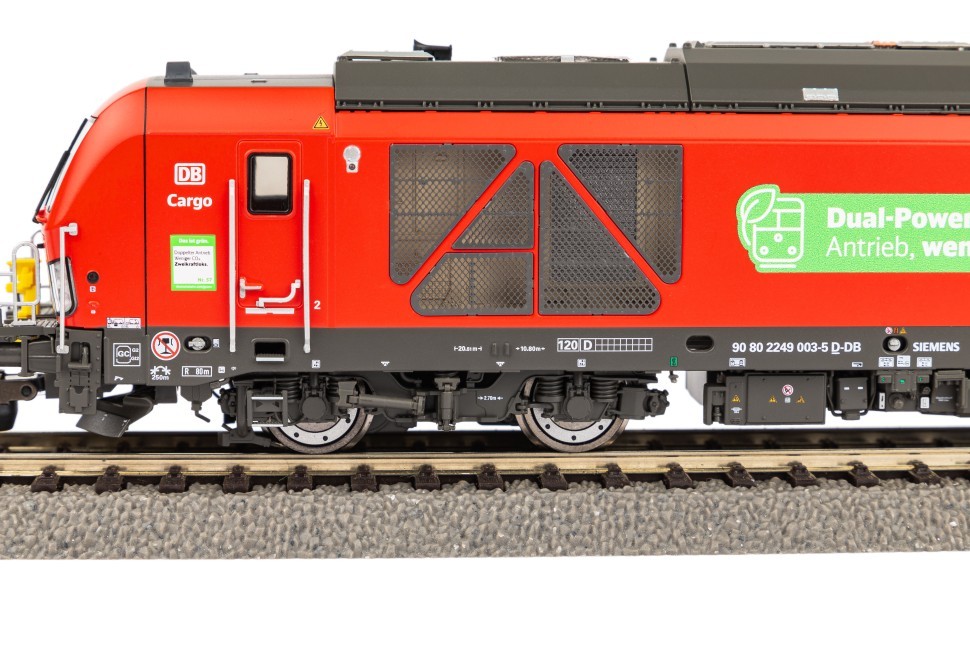 большие боковые поверхности с характерными вентиляторами и крыша с пантографом характеризуют внешний вид современного Vectron Dual Mode. При проектировании и изготовлении модели большое внимание уделялось деталям: чрезвычайно проработанные вентиляционные решетки и тележки. Мощный двигатель и два маховика обеспечивают отличные ходовые качества, а расположенные по диагонали резиновые бандажи обеспечивают прекрасную тягу. Подсветка кабины и пульта управления может быть осуществлена в цифровом режиме. В варианте XP дополнительно установлены импульсный испаритель и, впервые на заводе PIKO, цифровой пантограф с возможностью подъема и опускания!