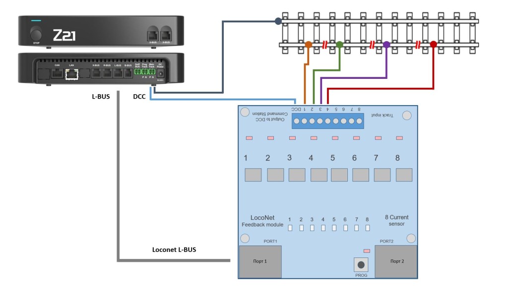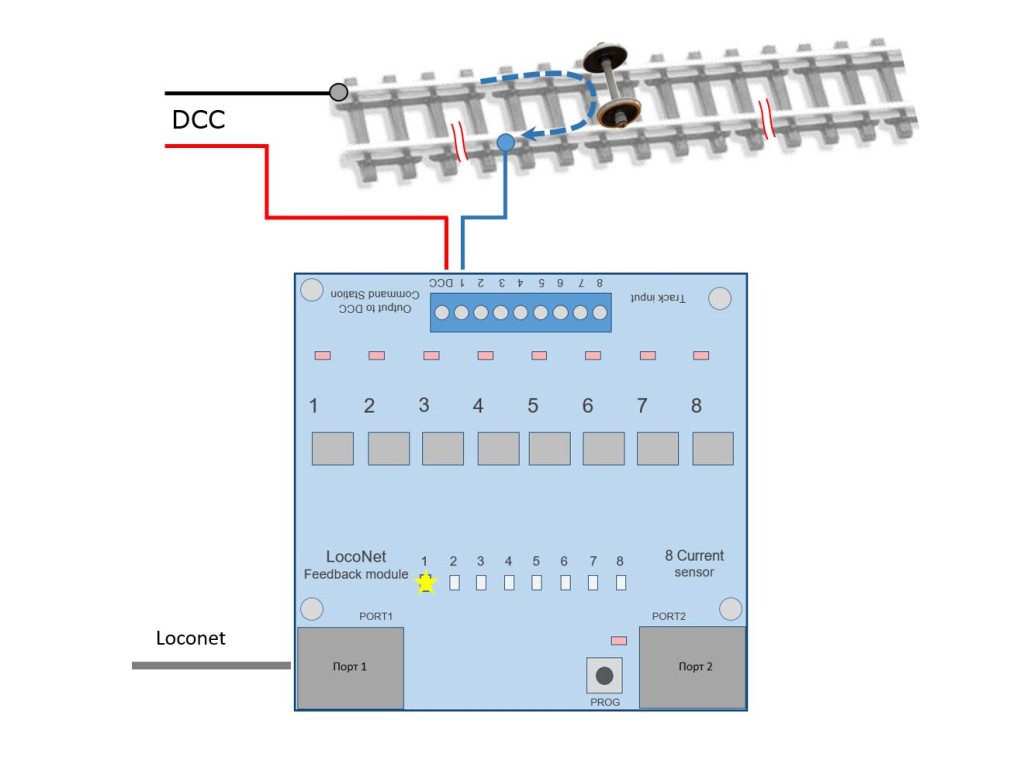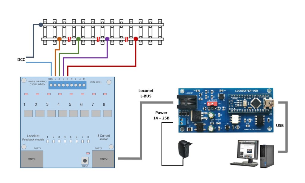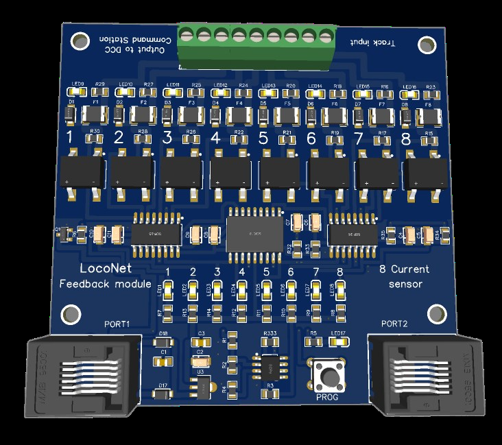 Модуль LocoNet Feedback предназначен для контроля занятости участков пути в цифровых железнодорожных макетах. Он использует измерение потребляемого тока для определения наличия подвижного состава на определённом участке.
