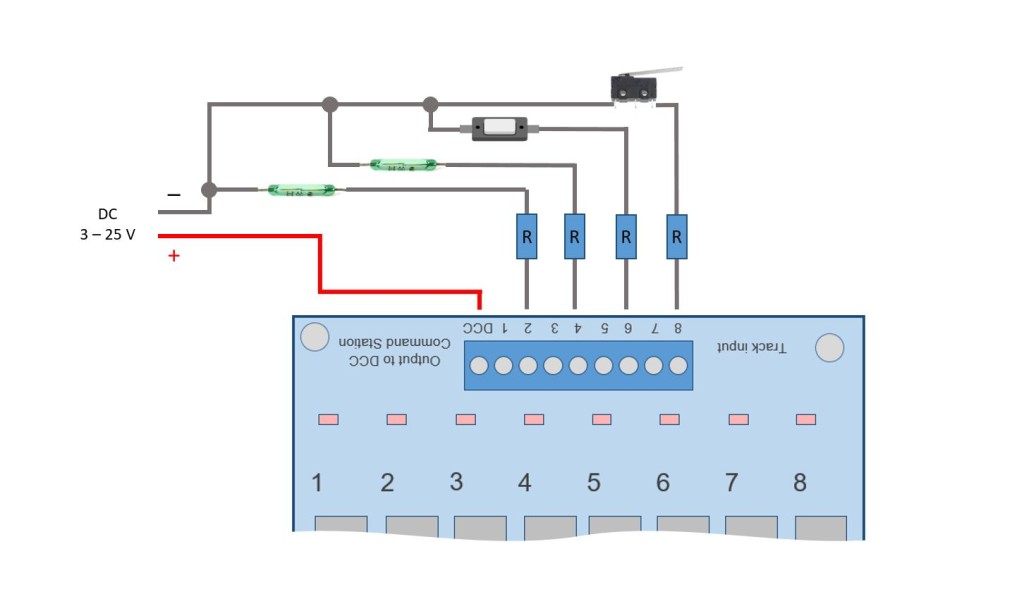 - Нет необходимости во внешнем источнике питания (питание модуля по линии LocoNet RailSync).