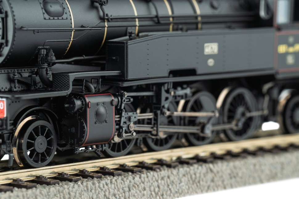 Модель паровоза выполнена в аналоговом варианте и оснащена платой PluX22 для несложной модификации с помощью цифрового декодера арт. 56500 или звукового декодера арт. 56603. Буферные огни локомотива меняют цвет с белого на красный в зависимости от направления движения.