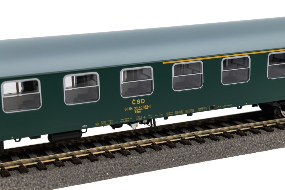Пассажирский вагон типа Y 1-го/2-го класса в версии Чехословацких железных дорог эпохи IV. Модель впечатляет своими превосходными ходовыми качествами, а из прозрачных окон, расположенных заподлицо, открывается вид на детально продуманный интерьер. Вагон можно оснастить подсветкой салона арт. 56270.