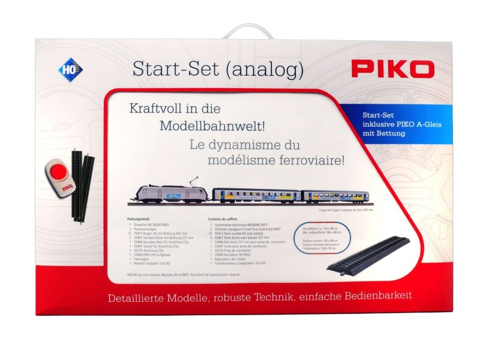 PIKO 97949 Стартовый набор с электровозом BB 26000 и 2-мя пассажирскими вагонами Corail, рельсы на подложке