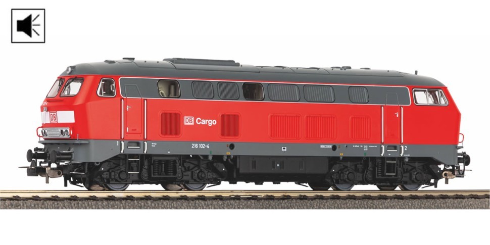 Модель тепловоза BR 216 с логотипом Cargo принадлежности Федеральных немецких железных дорог эпохи V.