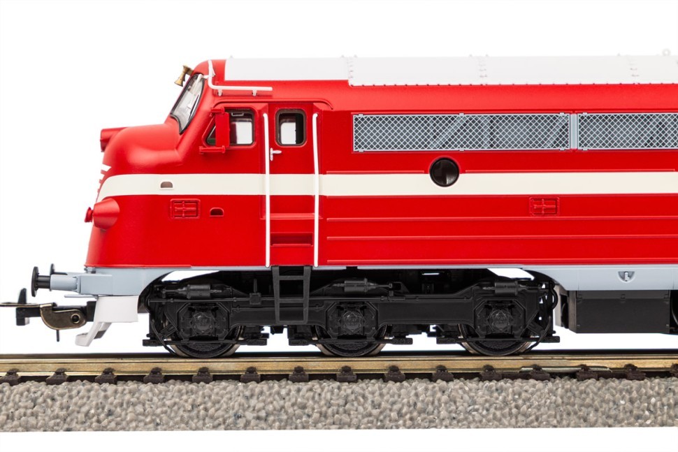 Модели PIKO от NoHAB отличаются неоспоримой элегантностью прототипа. Для достижения такого впечатления большое значение придавалось деталям. Боковые вентиляционные решетки являются прочно структурирующими элементами кузова локомотива с мелкотравленными деталями и привлекают внимание. Но также характерные передние боковые окна, а также боковые «иллюминаторы» способствуют превосходному образу благодаря идеальной посадке на одном уровне. Впечатление дополняет точная и очень детальная конструкция тележек. Приводом служит мощный и плавный двигатель с двумя маховиками.