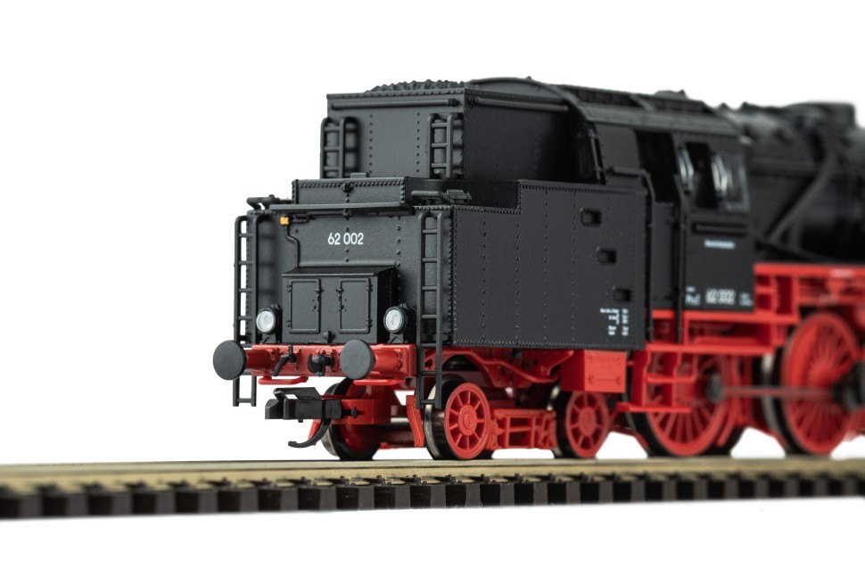 Модель паровоза класса 62 Железных дорог ГДР, эпохи III, в которой была идеально воссоздана и воплощена приземистая конструкция и прочие характерные черты прототипа. Прозрачные оконные вставки кабины машиниста открывают вид на детализированный интерьер. Модель обладает оптимальными ходовыми качествами. Современный интерфейс Next18 обеспечивает возможность для несложной модернизации локомотива с помощью цифрового декодера арт. 46502 или звукового декодера с динамиком арт. 46554, что открывает расширенные возможности в использовании световых и звуковых функций. В аналоговом варианте в зависимости от направления движения буферные огни имеют белый или красный цвет. Модель оснащена короткими сцепками TT.
