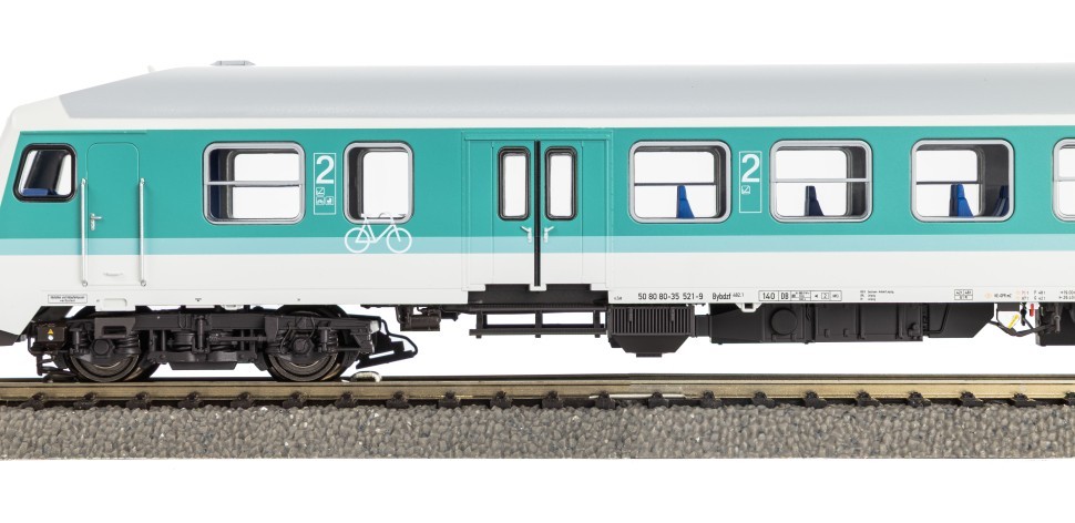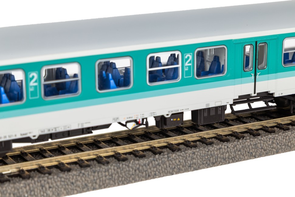 Модель данного вагона в мятно-зеленой цветовой гамме относится к линейке пассажирских вагонов с входом в середине салона. Модель относится к Немецким железным дорогам Эпохи V. Прототипы таких вагонов производились в г. Хальберштадте. В модели превосходно переданы характерные контуры вагона управления, а сквозь прозрачные окна открывается вид на детально выполненный интерьер пассажирского салона. Точные копии дверей, тележек и многочисленные отдельно установленные детали, такие как ступеньки и поручни, идеально дополняют общее впечатление. Модель подготовлена для дооснащения внутренней подсветкой арт. 56314 и габаритными огнями арт. 56316.